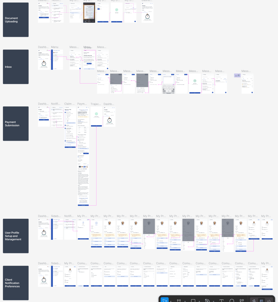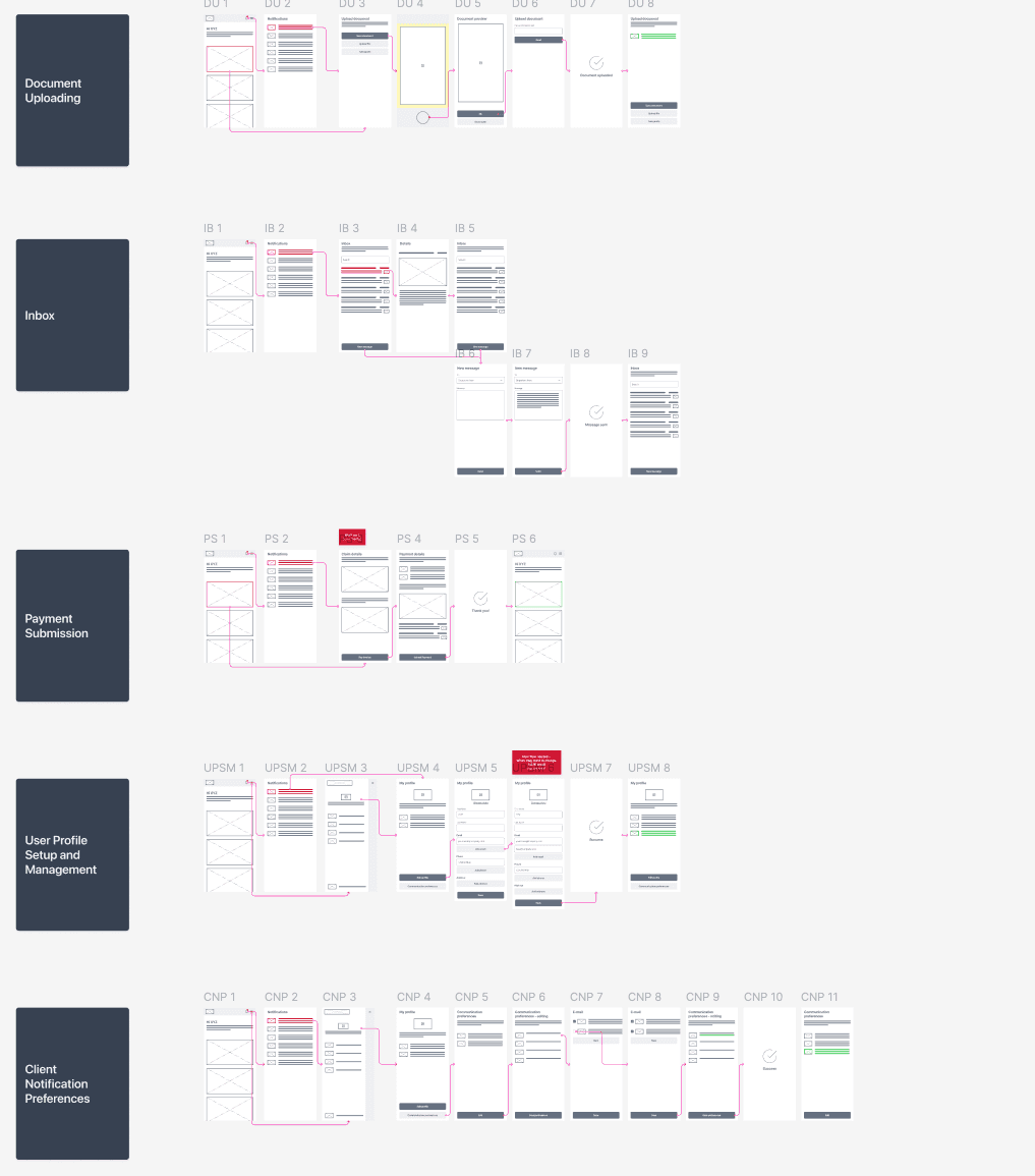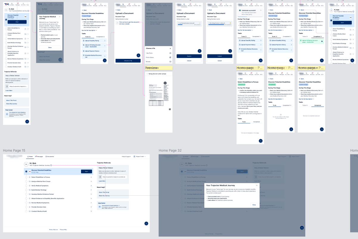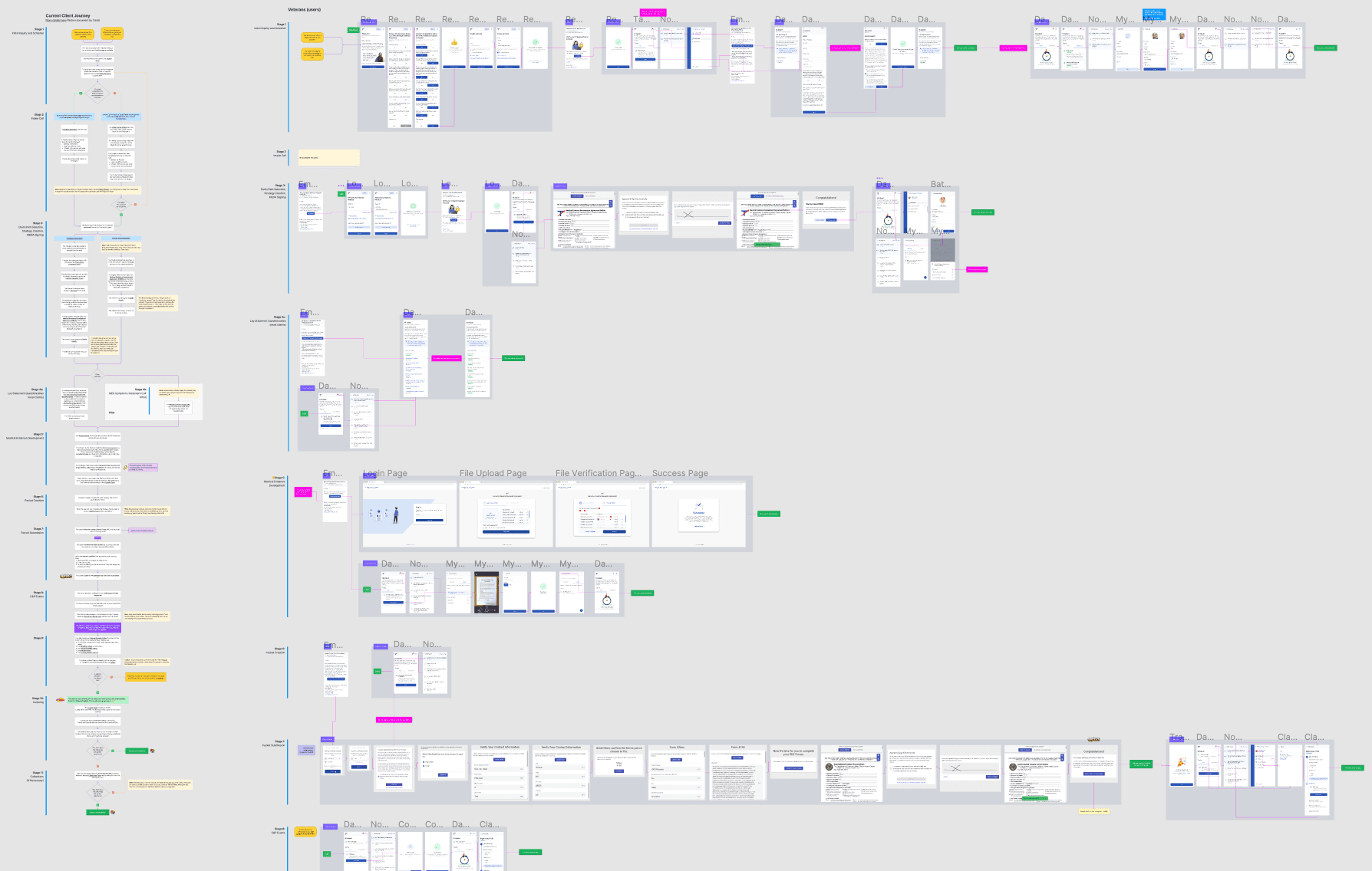 After the Pivot presentation to stakeholders, we received positive feedback, and that was the moment we started working on the veteran portal. The next step was to expand all user flows, paying particular attention to edge cases and validations. To make everything understandable and easy to correct, the flows and views were expanded.